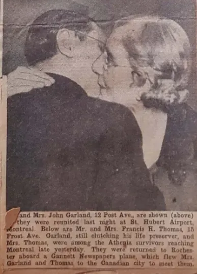 But much of the scrapbook concerns my great-grandmother’s harrowing experience as a passenger of the Athenia, a ship traveling from England to the United States in the fall of 1939, which was torpedoed by a German submarine at the beginning of World War II. She and the other passengers were evacuated into lifeboats, where they floated overnight, in view of the sinking ship and afraid of another submarine attack, before most were rescued by nearby ships who came to aid.